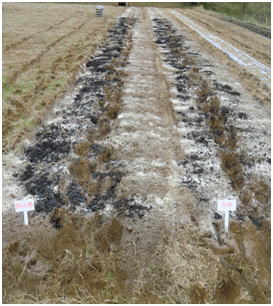 (1) まず、前作の残渣(根)を可能な限り取り除きます。そして、天日に晒します。